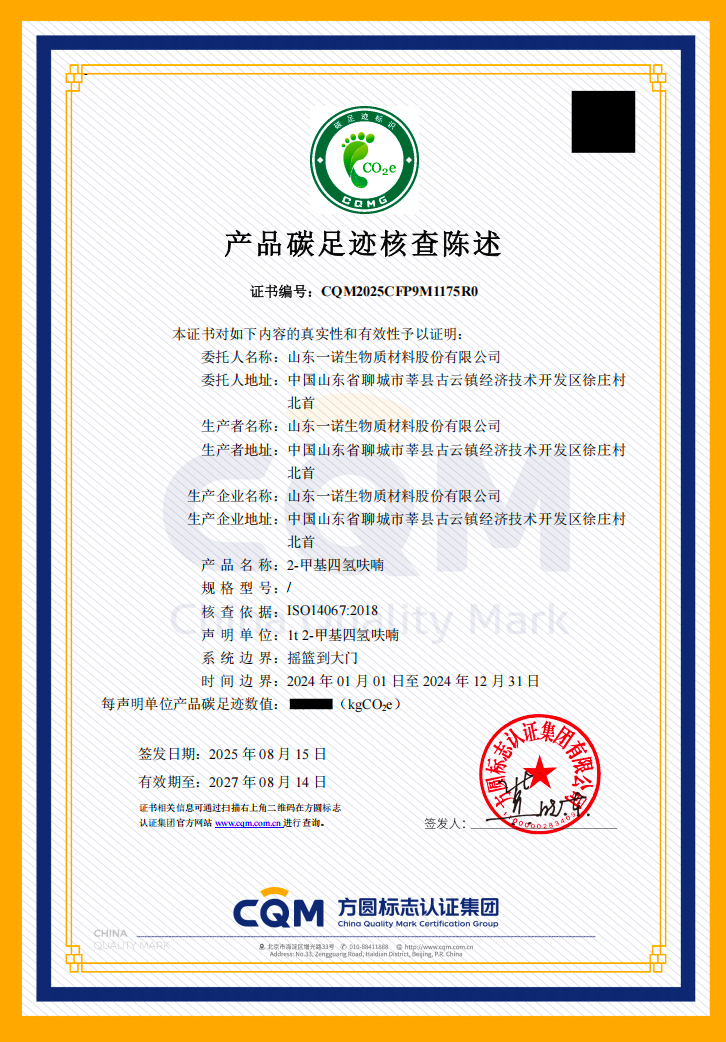 業(yè)內(nèi)人士認(rèn)為,隨著全球?qū)μ甲阚E和環(huán)保合規(guī)要求日益嚴(yán)格,碳足跡核查認(rèn)證已成為企業(yè)進入國際供應(yīng)鏈的重要門檻。一諾生物的成功認(rèn)證,不僅提升了產(chǎn)品在海外市場的認(rèn)可度,也進一步鞏固了公司在綠色化工領(lǐng)域的地位,并為合作伙伴實施低碳戰(zhàn)略提供了有力支持。